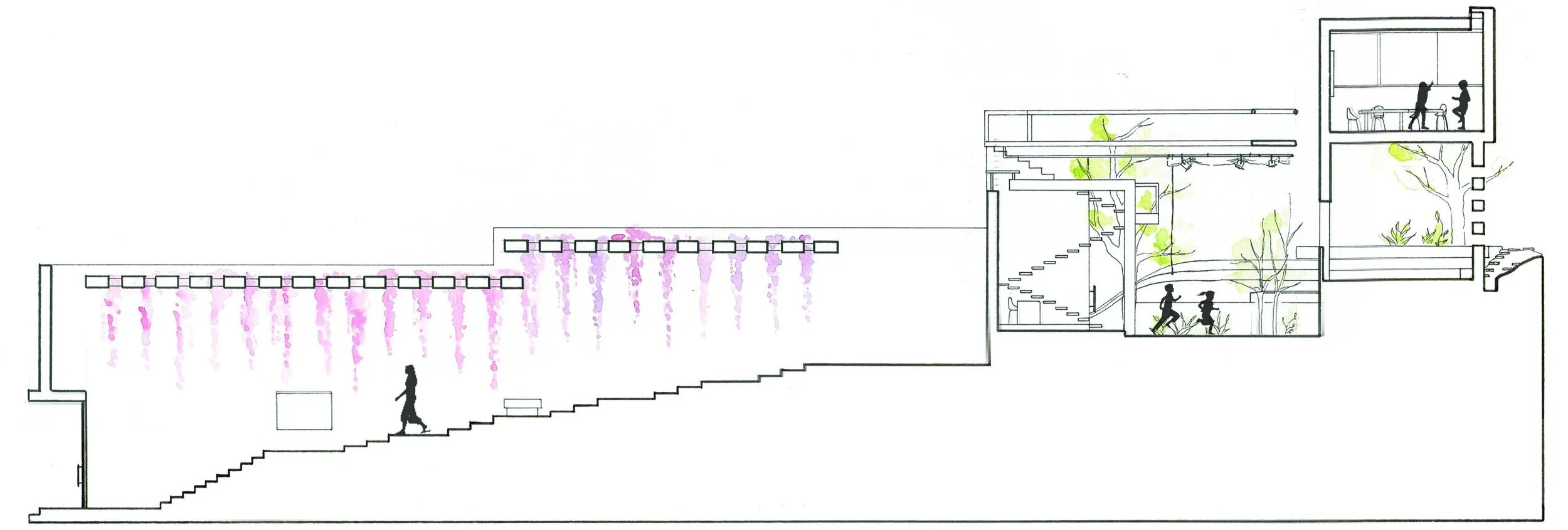 Creating a space for the community of San Miguel to gather began with a study of the people themselves. The strangely shaped site led to a dramatic build up and reveal, inspired by the hidden courtyards of the city and fitting for the entry sequence of an outdoor theater and performance area. The after school center, cafe, and offices utilize the slope of the site to create interesting level changes and sight lines- further connecting the people to one another.